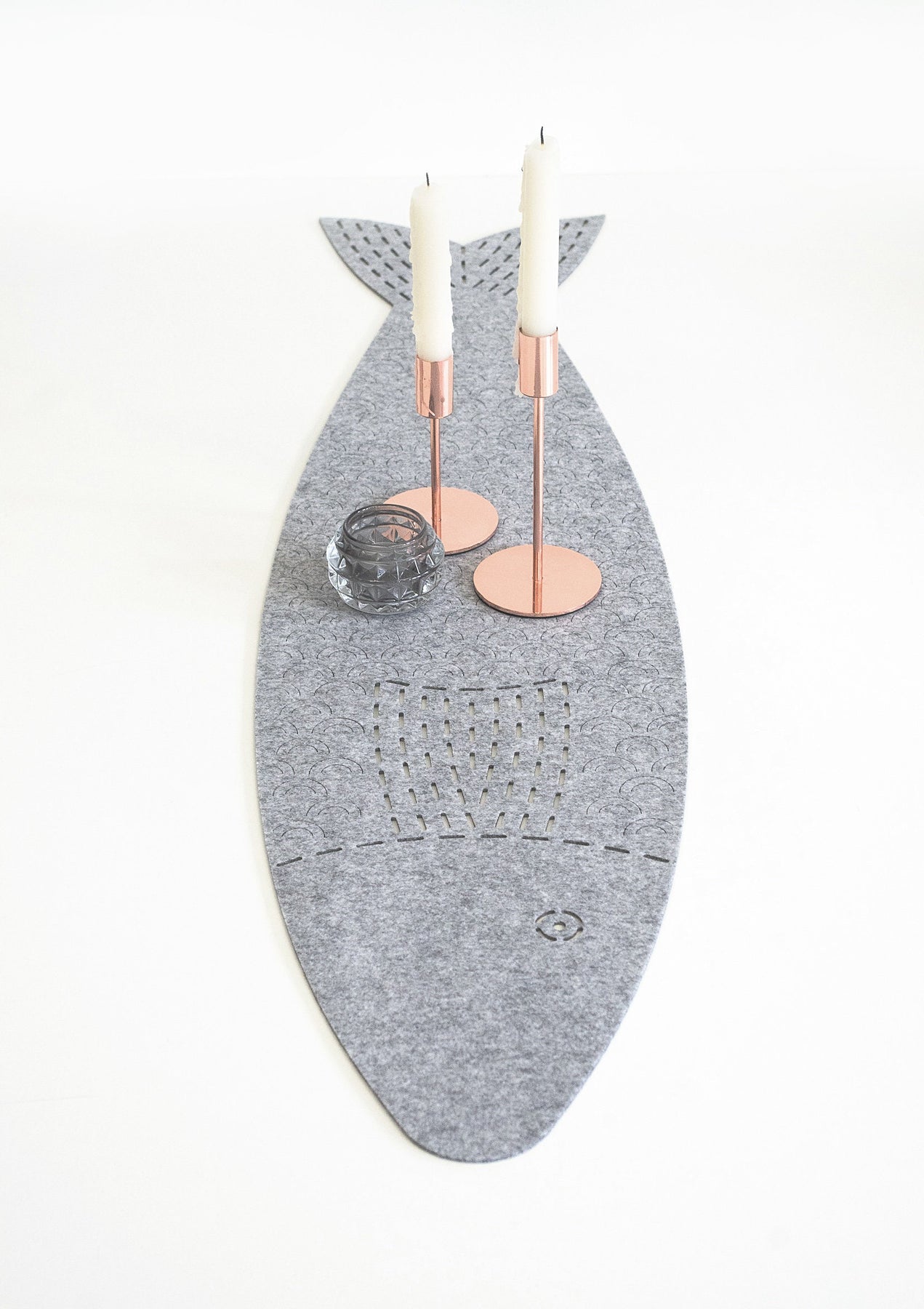 Modern table runner "Fish" made of high quality felt .